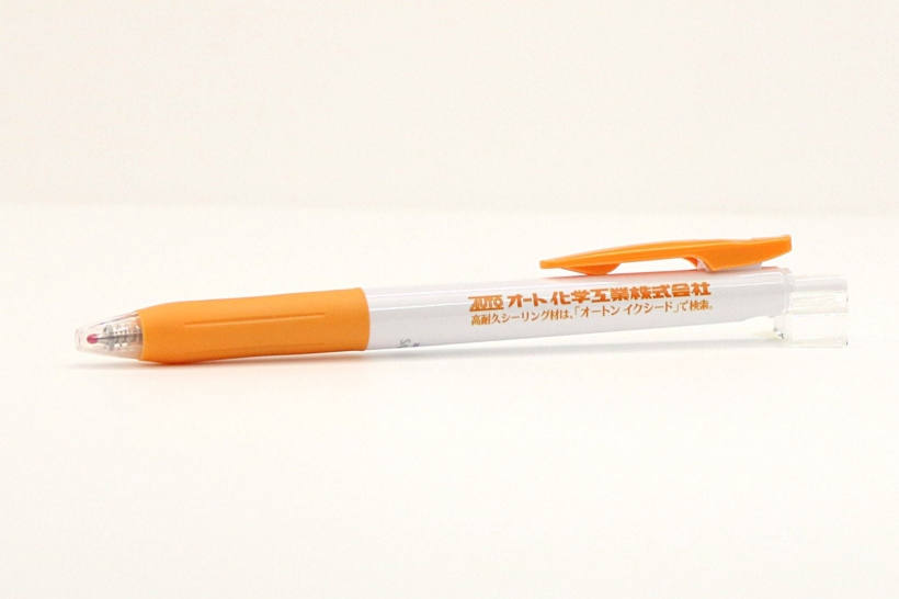 この度は【サラサクリップ0.5名入れ用白軸】をご購入いただきまして誠にありがとうございました。 こちらのサラサクリップ0.5名入れ用白軸にオレンジ名入れで印刷した製作実績を掲載させていただきます。アンケートでは全てにおいて大変満足の評価をいただきまして感激しております。 オレンジのクリップやグリップと印刷色のオレンジをあわせたことによって、統一感が出てとてもお洒落なボールペンに仕上がりました。 また機会がありましたら名入れボールペンのスピーディアをどうぞよろしくお願いいたします。