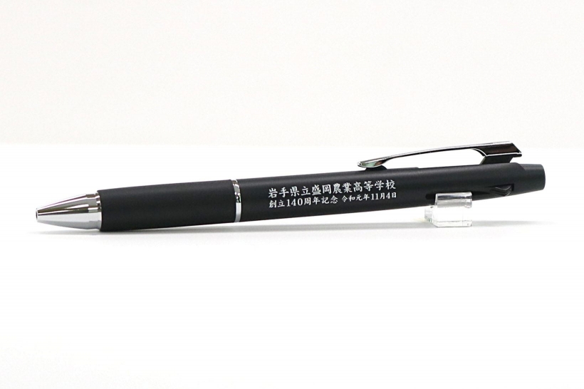 この度は、【ジェットストリーム2&1 0.7 3機能ペン】をご購入いただきまして誠にありがとうございました。こちらのジェットストリーム2&1 0.7 3機能ペンにシルバー名入れで印刷した製作実績を掲載させていただきます。アンケートではスタッフ対応及び商品の仕上がりにご満足いただけまして本当にうれしく思います。ジェットストリーム2&1 0.7 3機能ペンは重量感があり高級感抜群の多機能ペンになりますので、記念品としてとても人気がある商品でございます。文字数が少し多めですが、バランスのよく配置いたしまして綺麗に仕上げる事が出来ました。また、機会がありましたらお気軽にご相談いただけましたら幸いです。今後とも何卒よろしくお願いいたします。